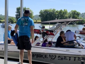 For the ninth year, Scott Hendricks, a renowned country music producer, and his wife Teri hosted “A Day to Remember” for our Nashville home residents at their beautiful property on the Cumberland River. When asked about how he got involved with Mercy Multiplied, Scott responded, “Jason Tucker, a well-known local member of the Nashville Ski Club and illustrious ski coach, educated me on In His Wakes in 2010. Jason has been instrumental in being the liaison between In His Wakes and Mercy Multiplied since the first ‘A Day To Remember’ event. Teri and I felt super blessed to have such a perfect place to host these events and wanted to share that blessing with In His Wakes and Mercy Multiplied.” Teri adds, “We just want the residents to know we support them and believe in them. Their positivity and resiliency inspire us, and we walk away so full of joy. We are thankful for everyone at In His Wakes and Mercy Multiplied and honored to be part of something so meaningful!”